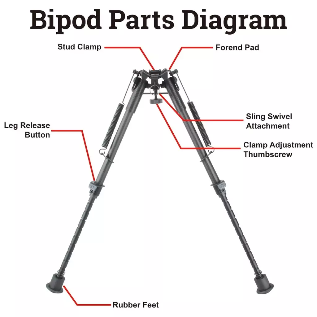 Bipé para airsoft, portátil, Versátil e Estável feito de fibra de carborno, com adaptador Picatinny, fixação por alavanca de bloqueio, pés de borracha, estrutura de liga de alumínio.