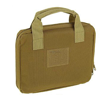 Case para pistolas de airsoft ou acessórios, no formato de maleta, feita em tecido grosso, 100% poliester, resistente e com costura reforçada, e seu interior é macio, pois possui revestimento em espuma, além de possuir alça de mão (maleta).