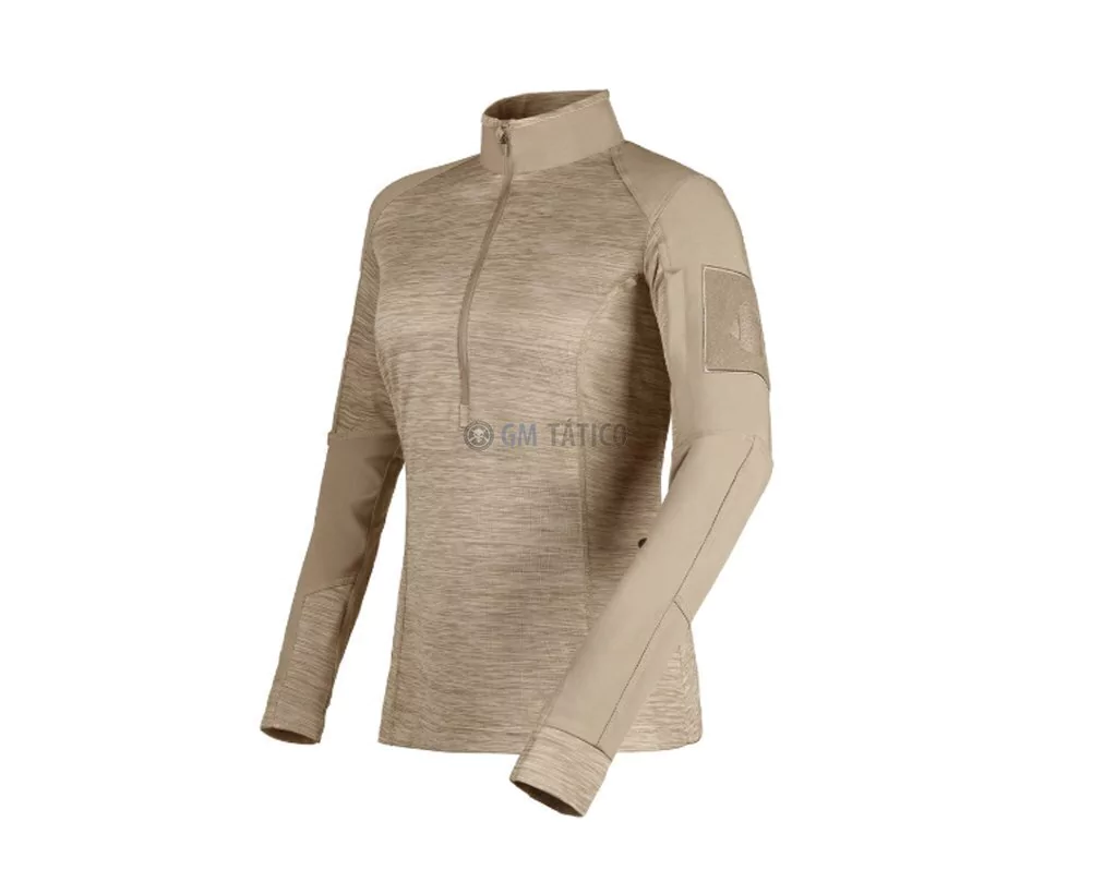 A Combat shirt FEMININA da INVICTUS é confeccionada com o flexível tecido 4WAY. Possui costura plana para maior amplitude de movimento e menor atrito, além de modelagem que se adapta ao corpo feminino. Este tipo de costura permite maior elasticidade, comumente utilizada em roupas de esporte.