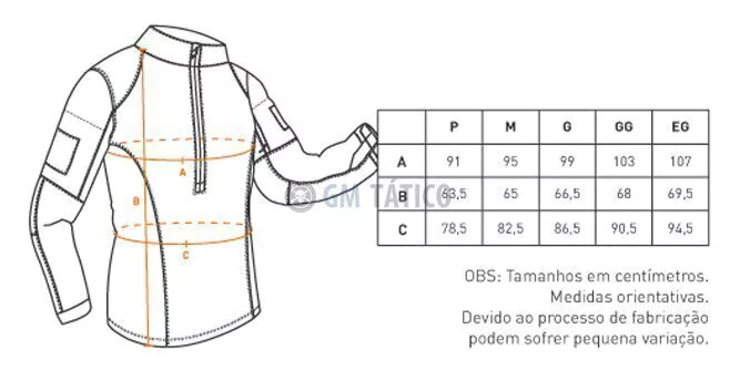 A peça oferece bolso embutido na manga, com fechamento em zíper, e tecido aderente para a fixação de patches e brasões. Os punhos possuem elastano para melhor ajuste.