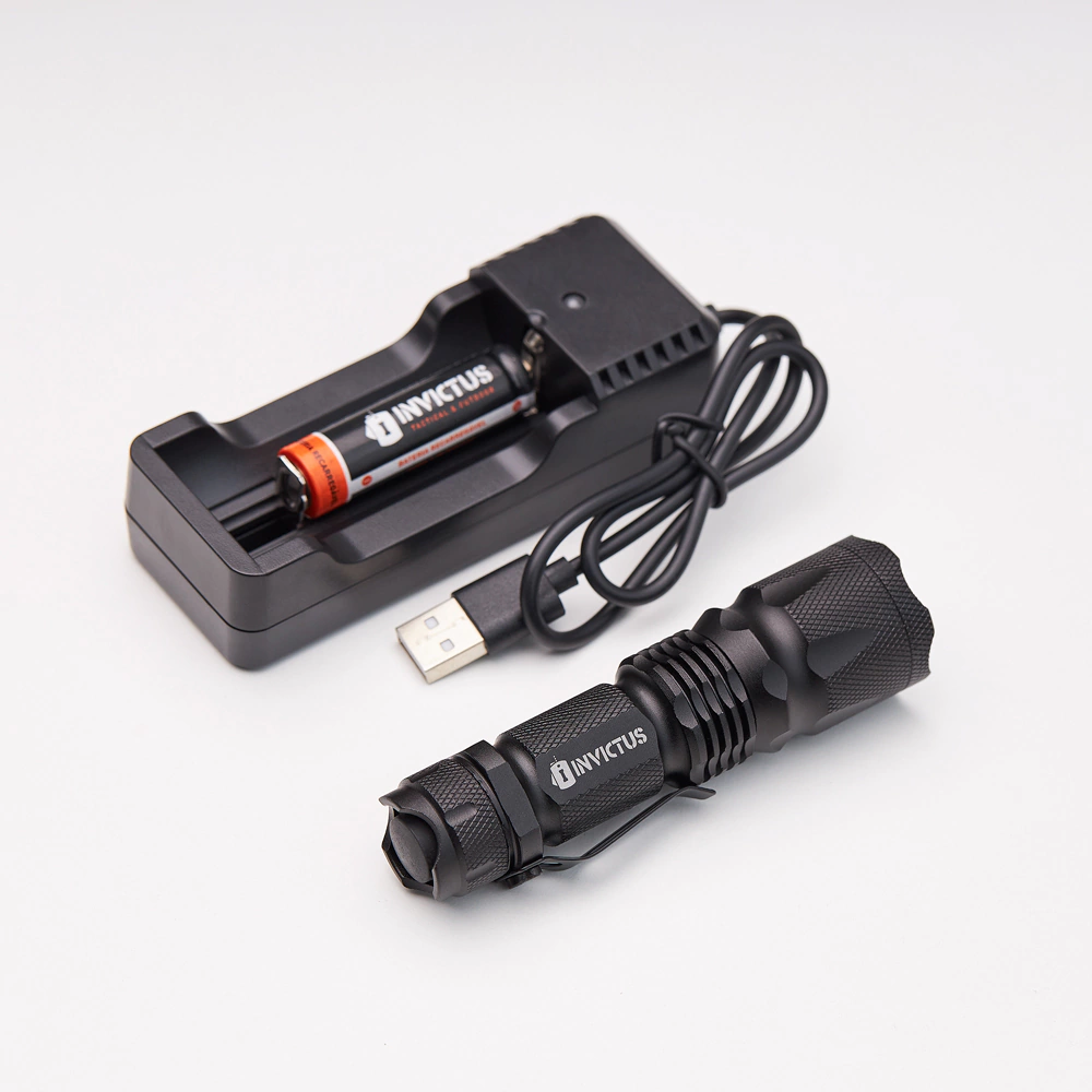 Produzida em alumínio e pesando apenas 65 gramas, a Bolt conta com proteção IP44 (proteção contra partículas sólidas maiores que 1 mm e respingo de água) e foco regulável com a função zoom. Ainda, acompanha carregador e Bateria Recarregável INVICTUS 14500. Se preferir, ela também funciona com uma única bateria AA com uma autonomia de até 2 horas.
