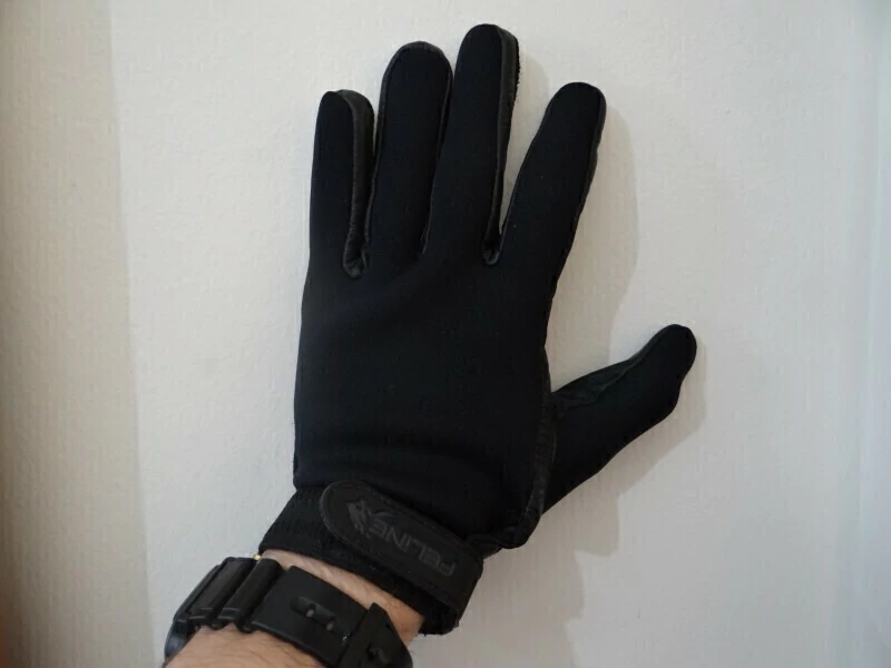 Dorso da mão em (Neoprene®) com 2 mm de espessura. Proporciona flexibilidade, elasticidade, resistência e proteção térmica.