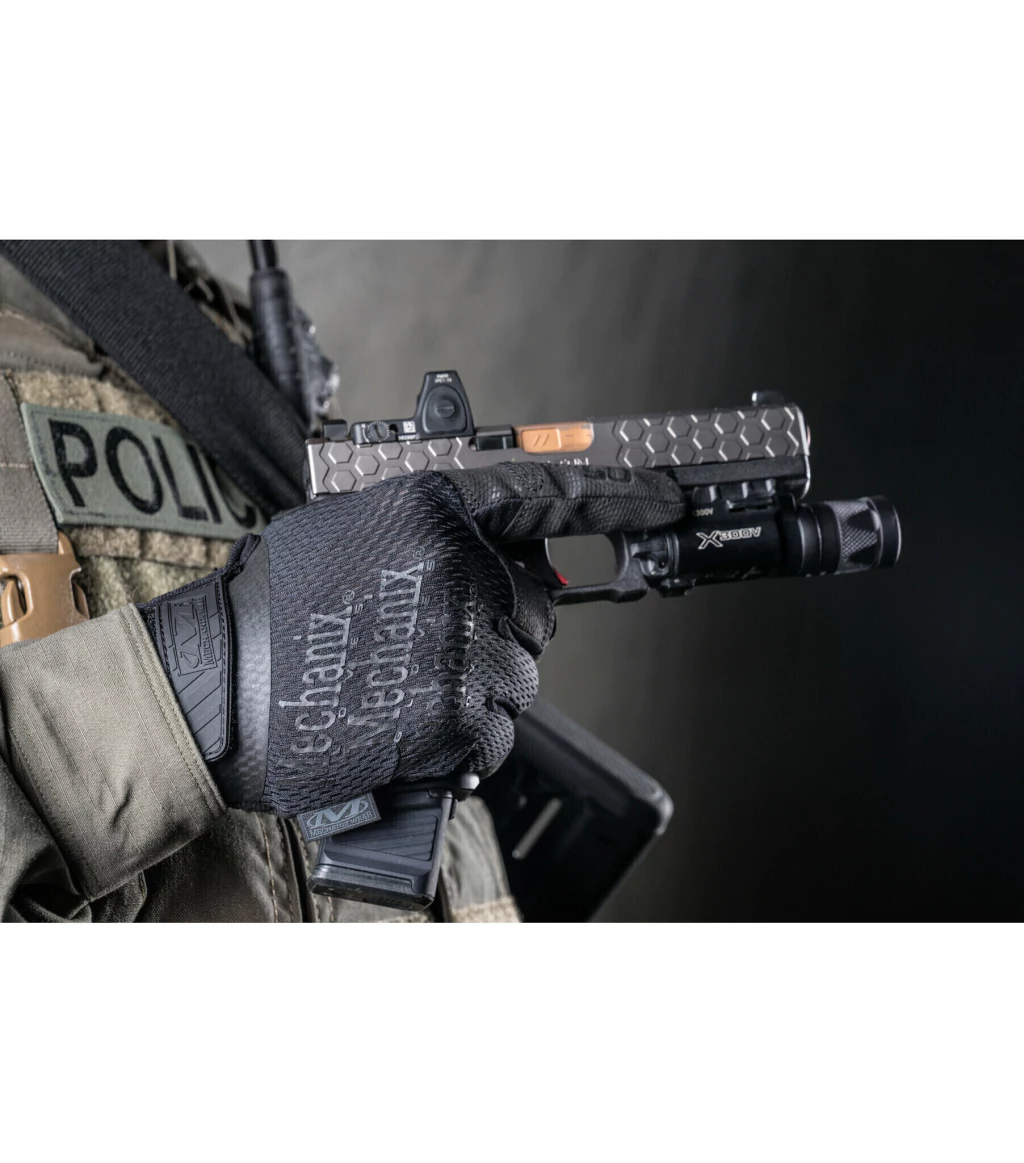 A luva tática Specialty garante uma maior sensação de precisão e alta destreza, proporcionando uma sensação natural com uma proteção leve e com um design anatômico. O AX-Suede ™ de 0,5 mm fornece a combinação perfeita de controle e proteção tátil no campo ou no campo de tiro. O TrekDry® é um tecido respirável reduzindo o acúmulo de calor, mantendo suas articulações flexíveis e expansíveis melhorando a mobilidade do dedo.