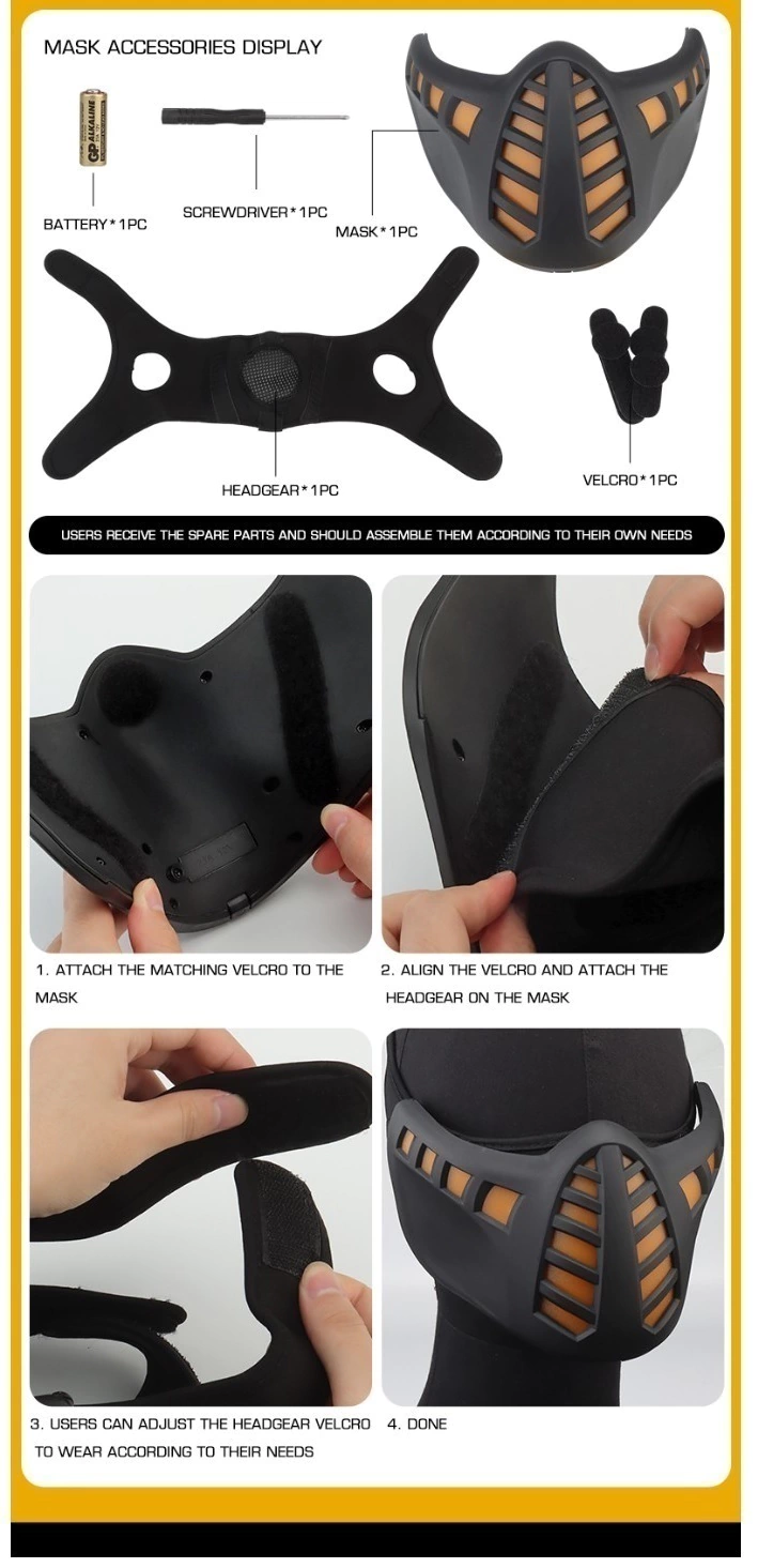 Está na hora de se destacar na cidade das sombras! Apresentamos a Máscara LED Scorpion Cyber Punk, uma peça de equipamento essencial para quem deseja se transformar em uma lenda urbana em um mundo de alta tecnologia e neon.