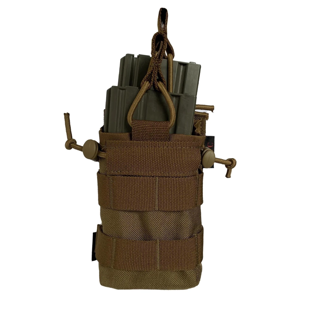 Porta magazine duplo, com sistema modular, confeccionado em cordura 1000 Denier e com fio 100% poliamida. Comporta 2 magazines.