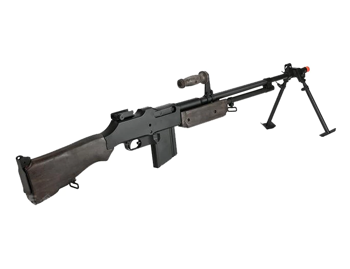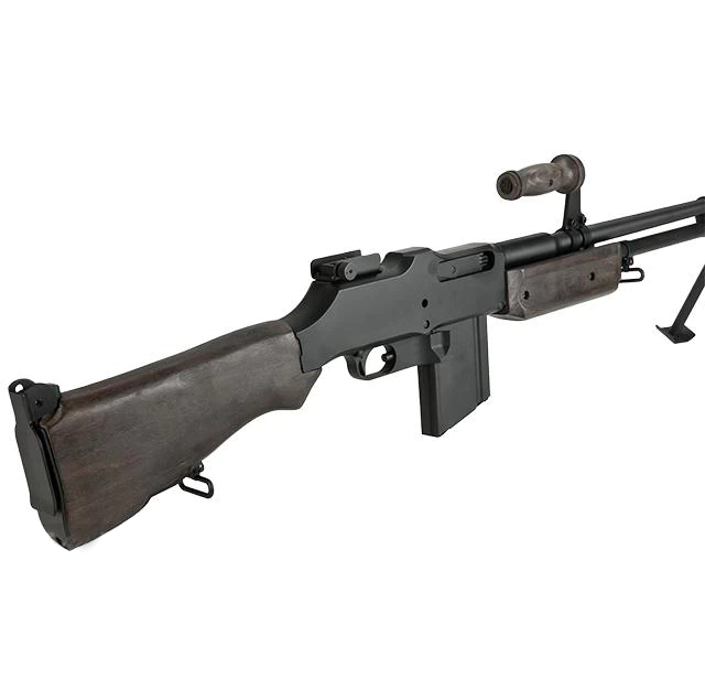 A Matrix BAR é uma réplica fiel do Browning Automatic Rifle (BAR), construída com metal de alta qualidade e madeira real. O modelo inclui miras ajustáveis, bipé de aço e alça de transporte. Ideal para colecionadores e fãs de reconstituições militares, a arma é robusta e precisa, com uma capacidade de 190 BBs e velocidade de até 400 FPS. Um item perfeito para quem deseja adicionar um clássico da Segunda Guerra Mundial à sua coleção.