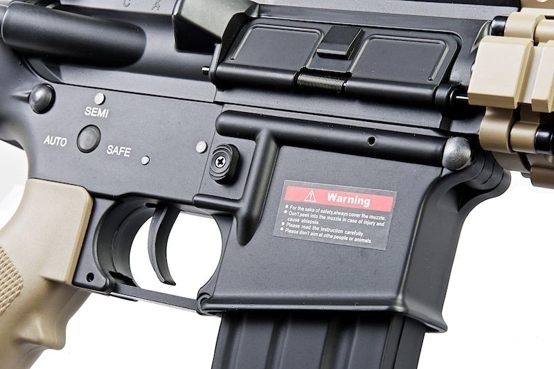 A E&C MK18 MOD1 EC-603 é uma rifle de airsoft AEG de alto desempenho, desenvolvida para jogadores que buscam realismo, robustez e excelente performance em campo. Com construção full metal, este modelo oferece durabilidade superior, sensação realista no manuseio e alta confiabilidade mecânica.Equipada com sistema elétrico AEG, hop-up ajustável e gearbox metálico reforçado, a MK18 MOD1 é ideal tanto para CQB quanto para jogos em ambientes externos. Seu cano de 9 polegadas garante agilidade, enquanto o trilho RIS permite ampla personalização com acessórios táticos.
