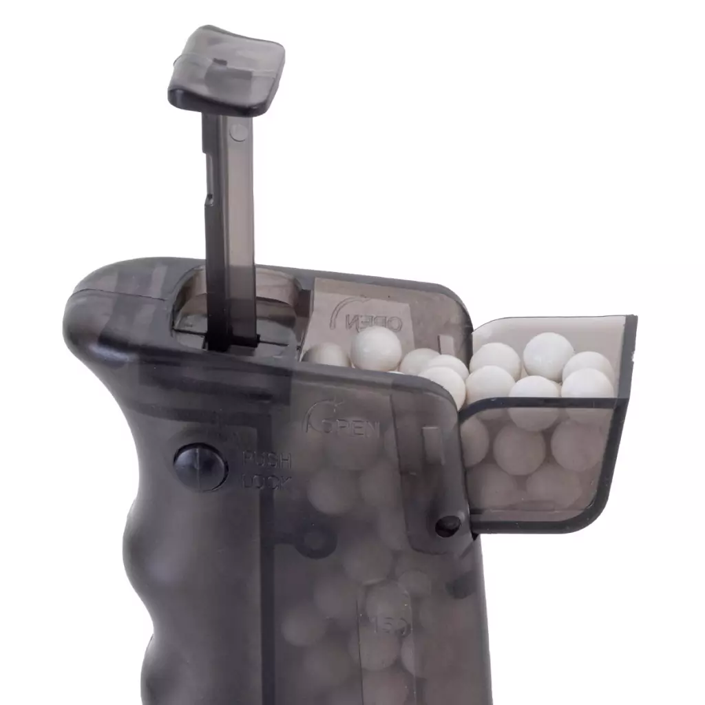 Speed loader para airsoft, com capacidade de 150 bbs, feito em abs de alta resistência, transparente, podendo ver a quantidade de bolinhas dentro do speed loader!